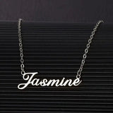 Crafted in a refined, flowing script, the name becomes a soft yet striking statement. Worn on its own or layered with other pieces, this necklace adds a personal touch to any style — from everyday casual to elegant evening wear.